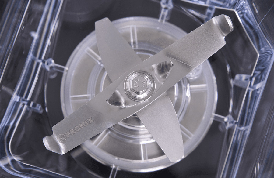 Lưỡi dao của máy xay đa năng Promix PM-1080 giúp phá đá cực nhanh, cực khỏe nhờ sự kết hợp hoàn hảo của thiết kế lưỡi dao. Thiết kế cánh dao bản lớn nhỏ khác nhau giúp đạt độ mạnh để phá đá, đủ độ sắc để cắt các loại xơ thịt trái cây. Đặc biệt, lưỡi dao được vát 2 bên cánh, thiết kế này sẽ tạo 1 vòng xoáy giúp hút thực phẩm ngược vào lưỡi dao để xay nhuyễn và nhanh hơn.