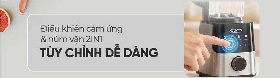 Bạn có thể lựa chọn các chế độ xay trên màn hình cảm ứng và chọn mức công suất xay bằng núm vặn cơ.