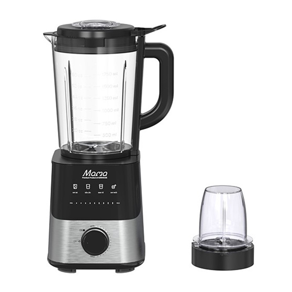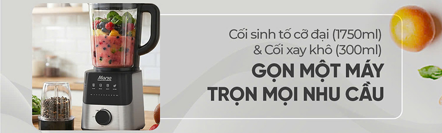 Máy trang bị 2 cối xay bằng nhựa AS cao cấp, dễ dàng sử dụng và vệ sinh sau khi dùng. Bao gồm 1 cối sinh tố 1.75 lít và 1 cối xay đồ khô 0.3 lít.