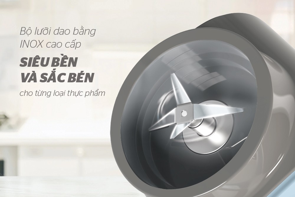 Lưỡi dao 4 cánh Inox sắc bén, không bị ôxi hóa, bền bỉ, an toàn cho sức khỏe khi sử dụng lâu dài