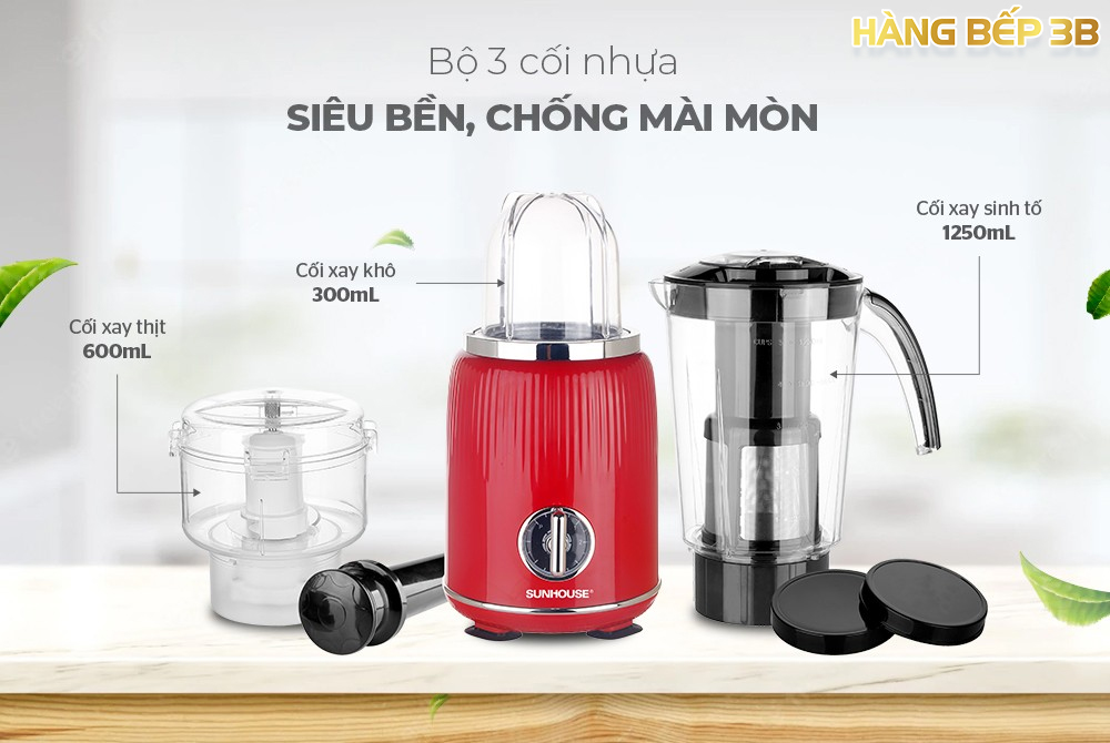 Máy xay đa năng SHD5330R được trang bị bộ 3 cối xay sinh tố bằng chất liệu nhựa siêu bền, hạn chế trầy xước, không bị mài mòn, đặc biệt an toàn cho sức khỏe.