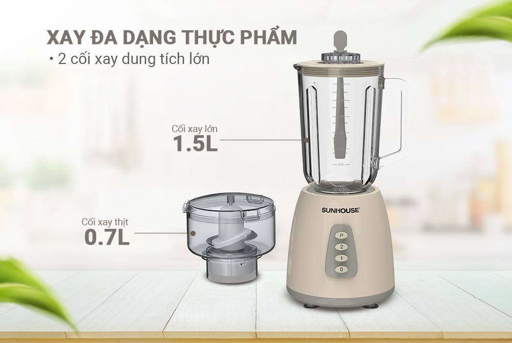 Máy xay sinh tố Sunhouse SHD5118 có khả năng xay mịn và nghiền nhuyễn mọi loại thực phẩm với 2 cối xay đa năng, dễ dàng vệ sinh sau khi sử dụng.