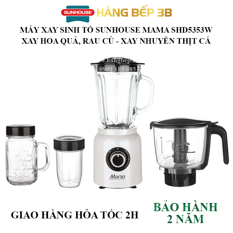 Máy xay sinh tố SHD5353W là sản phẩm đến từ Sunhouse thuộc dòng cao cấp Mama với đa dạng cối xay phù hợp với nhiều loại thực phẩm khác nhau. Sản phẩm này thích hợp sử dụng trong gia đình, mang đến những thức uống thơm ngon và cũng hỗ trợ một vài công đoạn trong nấu ăn.