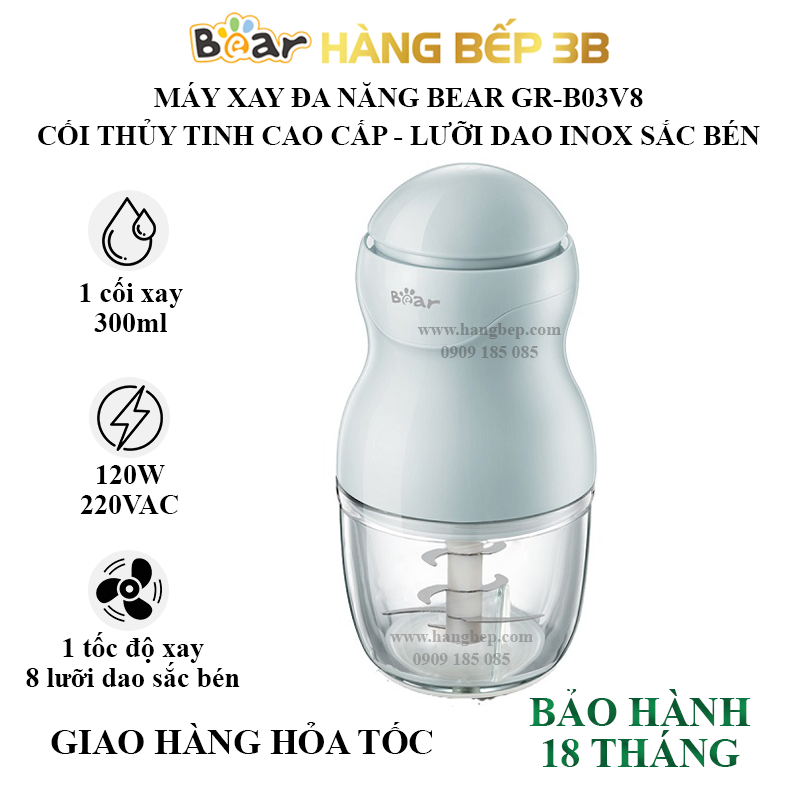 Sở hữu dung tích nhỏ gọn 300ml cùng chất liệu thủy tinh cao cấp, máy xay thịt Bear GR-B03V8 sẽ đáp ứng nhu cầu xay thịt, rau củ và gia vị và đặc biệt là tiện trong việc xay đồ ăn dặm cho bé.