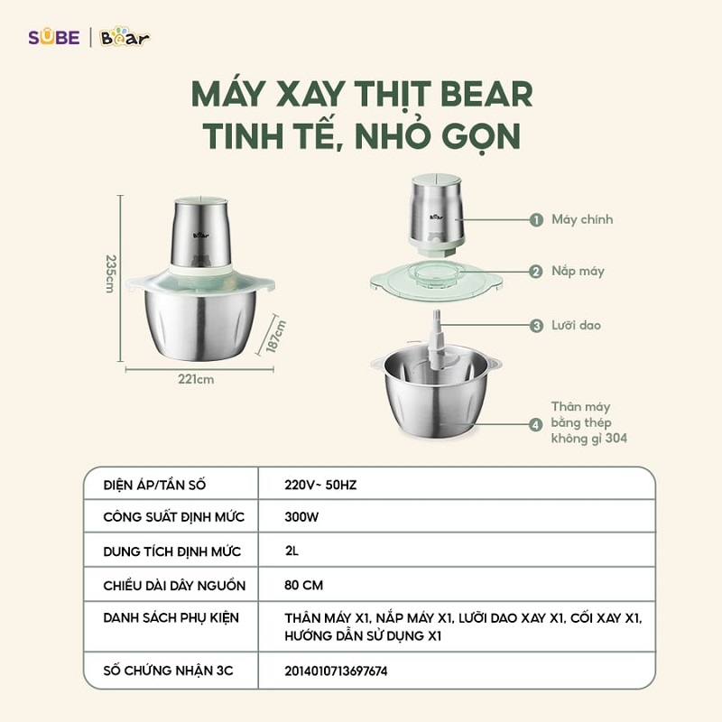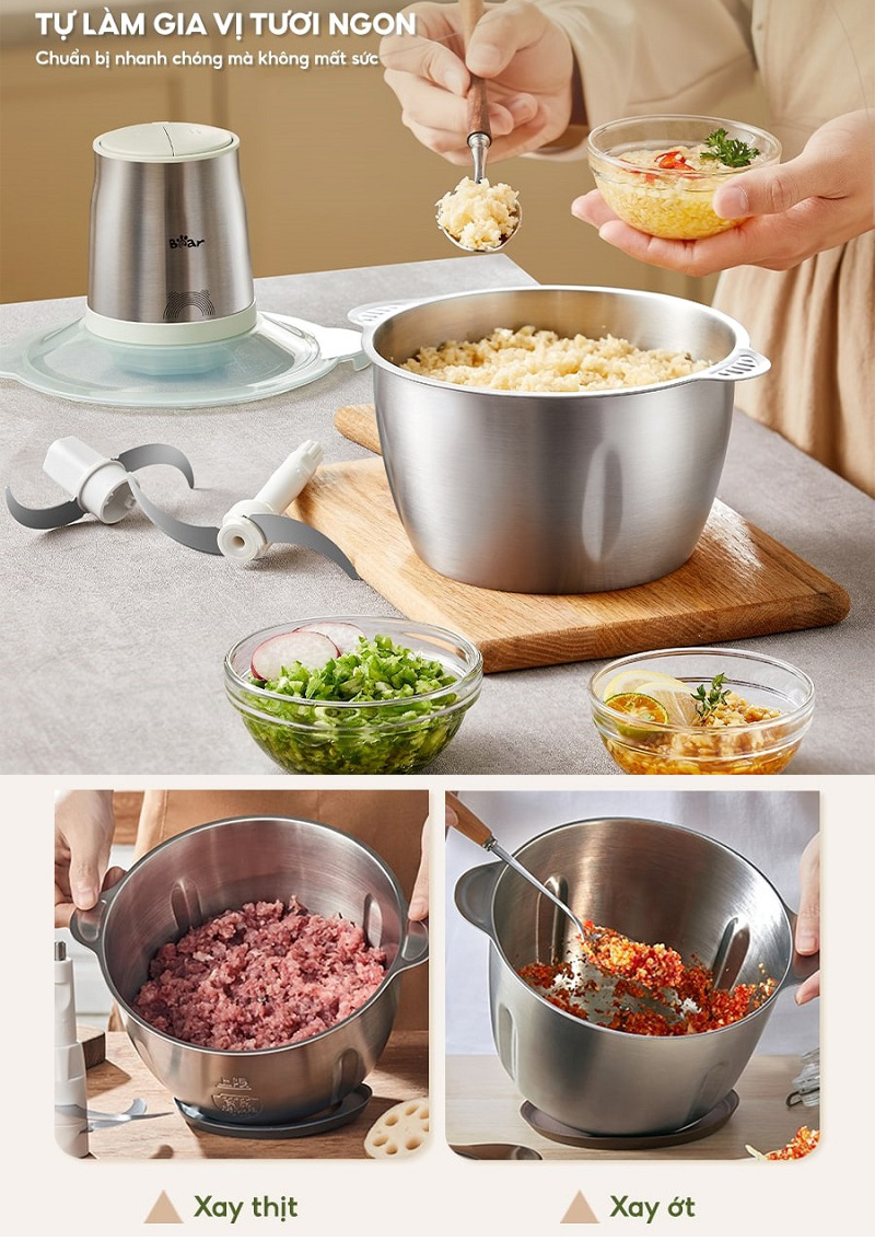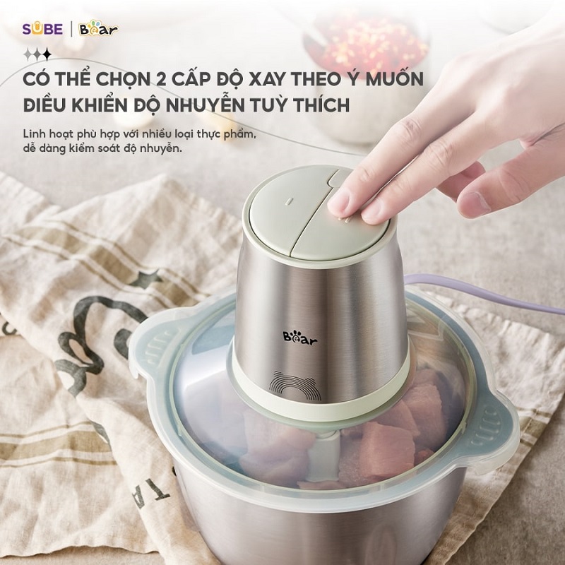 Máy xay thịt Bear 2 lít CH-4H03F là chiếc máy xay đa năng hỗ trợ bạn chế biến món ăn, xay các loại hạt, xay gia vị và cả xay thức ăn dặm.