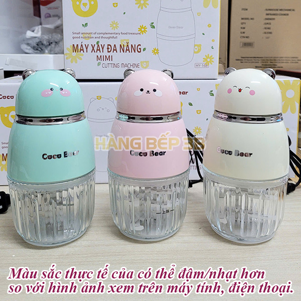 Tươi mới và trẻ trung với 3 màu pastel đáng yêu cho bạn lựa chọn hồng - xanh - be. Chiếc máy xay đa năng Coco Bear HY-168 không những hỗ trợ bạn chế biến món ăn mà còn giúp căn bếp thêm phần xinh xắn.