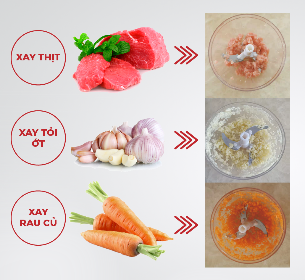 | Chức năng | Xay rau củ, tỏi ớt, hành, thịt |