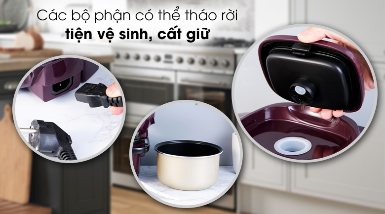 Các bộ phận của nồi như lòng nồi, dây điện, van thoát hơi,… dễ dàng tháo rời, vệ sinh và cất giữ