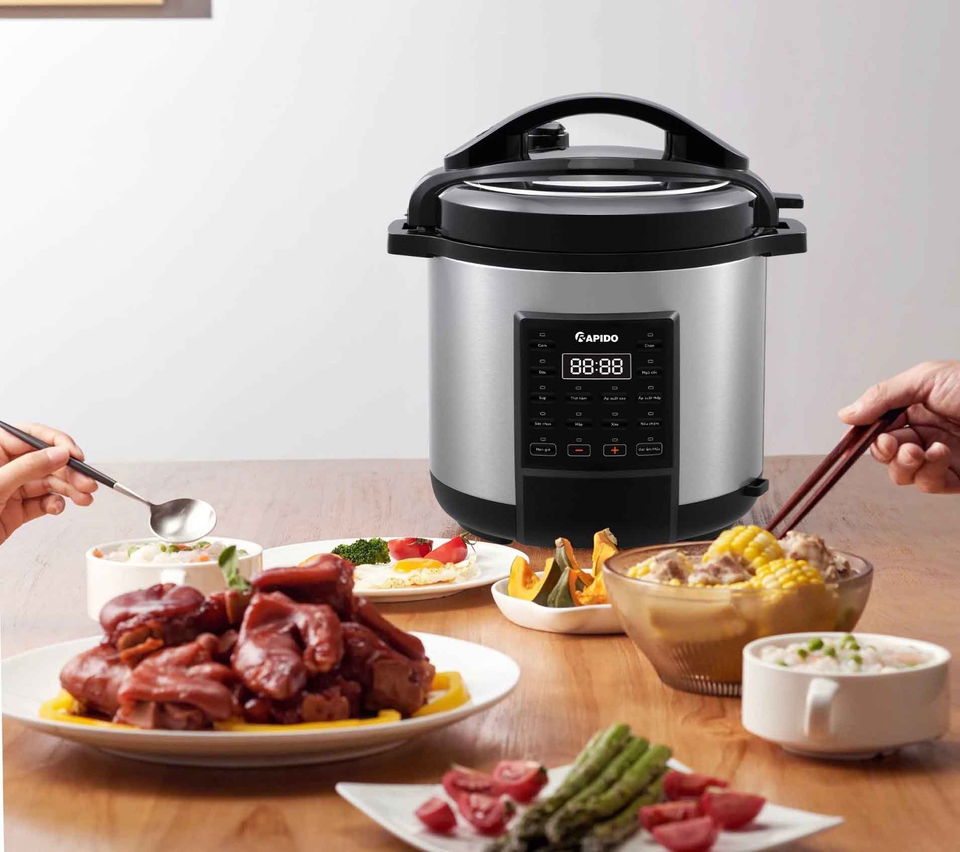 Nồi áp suất điện Rapido RPC900-D1 sở hữu hệ thống bảng điều khiển nút điện tử bằng ngôn ngữ tiếng Việt kèm màn hình LED hiển thị giúp bạn dễ dàng tùy chỉnh theo nhu cầu. Đặc biệt, nồi áp suất này trang bị 12 chức năng nấu được lập trình sẵn giúp bạn tiết kiệm thời gian hơn trong việc nấu ăn.