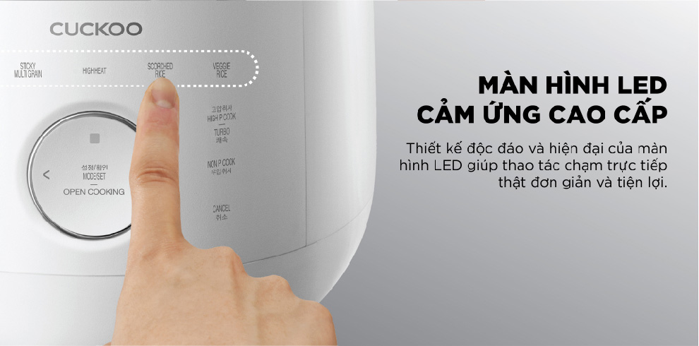 Điều khiển cảm ứng có màn hình hiển thị, dễ chỉnh chức năng, chế độ nấu qua thao tác chạm tiện lợi.