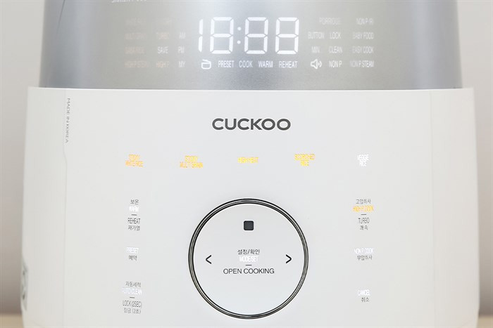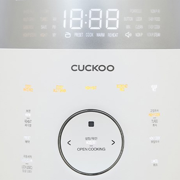 Nồi cơm điện áp suất cao tần Cuckoo CRP-LHTR1009F tạo ấn tượng với màu sắc tối giản, mang lại sự mới lạ cho căn bếp gia đình.