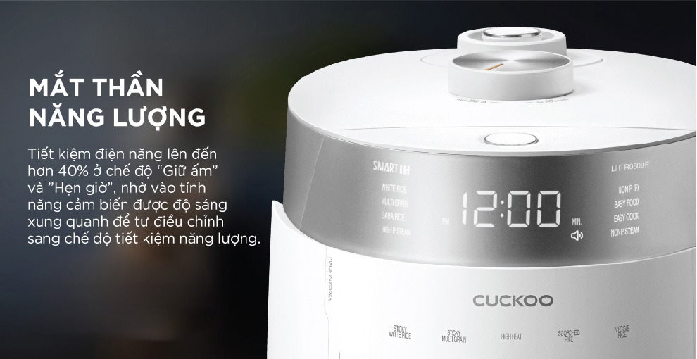 Nồi cơm có trang bị cảm biến mắt năng lượng, bằng khả năng cảm nhận ánh sáng trong phòng, nồi sẽ tự động chuyển sang chế độ tiết kiệm điện năng để giảm tiêu thụ điện của gia đình, tiết kiệm chi phí.