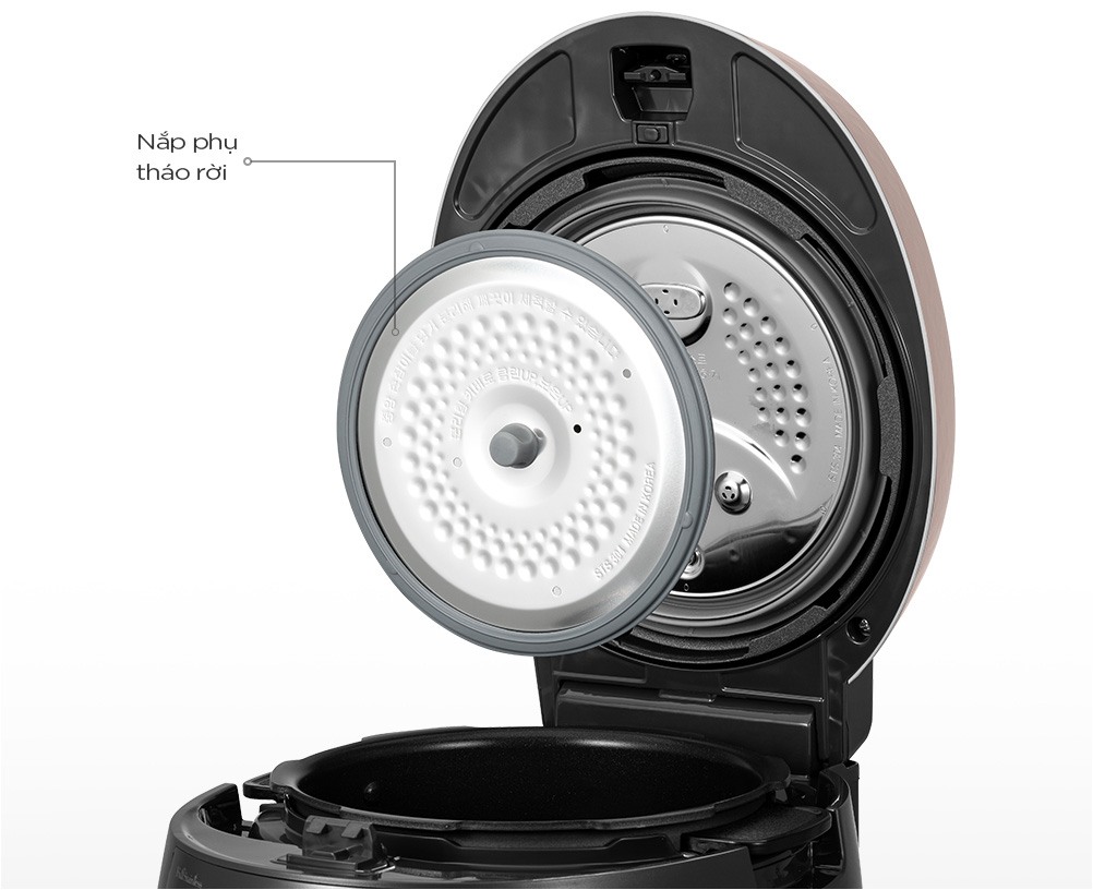 Nắp phụ của nồi cơm có thể tháo rời, giúp việc vệ sinh trở nên nhanh chóng và dễ dàng, đảm bảo nồi luôn sạch sẽ và món ăn thơm ngon, không lẫn tạp vị.