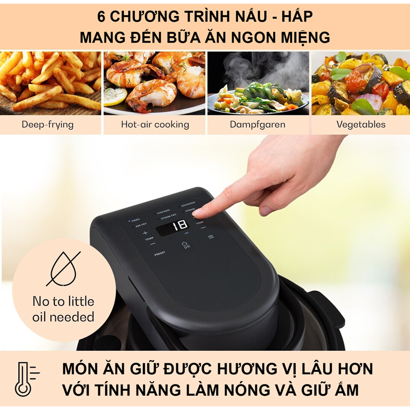 | Chương trình nấu | 6 chương trình (Air Fry, Steam Fry, Fries, Chicken, Sous Vide, Steam) |