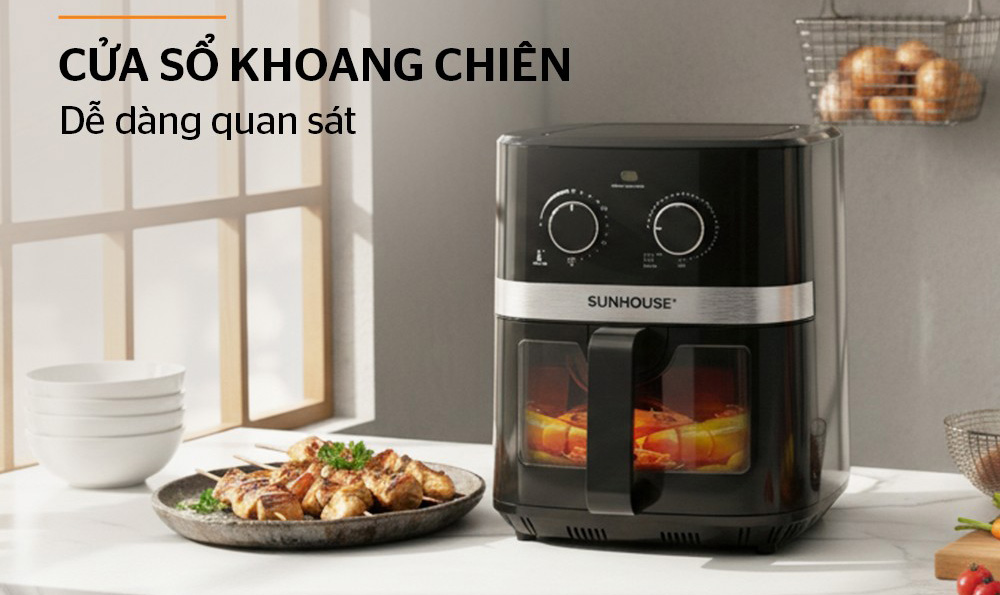 Nồi chiên không dầu Sunhouse SHD4039 được thiết kế với mặt kính ở phía trước nồi và đèn chiếu sáng bên trong khoang nồi. Trong quá trình nồi chiên hoạt động có thể dễ dàng quan sát được thức ăn trong nồi từ đó có thể điều chỉnh được nhiệt độ và thời gian, canh thời gian đảo lật tránh việc thức ăn bị quá nhiệt hay cháy xém.