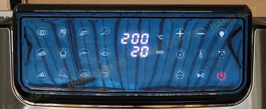 Bảng điều khiển cảm ứng hiện đại tích hợp sẵn 12 chương trình chế biến (đã cài sẵn thời gian và nhiệt độ thích hợp) giúp bạn chế biến đa dạng món ăn như gà nướng, khoai tây chiên, pizza, hải sản hay bánh ngọt. Ngoài ra, nếu bạn không chọn các chương trình có sẵn, bạn cũng có thể điều chỉnh thời gian và nhiệt độ theo nhu cầu sử dụng cá nhân.