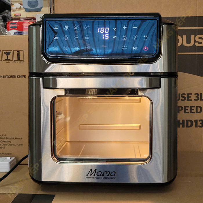 Nồi chiên không dầu Sunhouse Mama SHD4094 sở hữu dung tích cực lớn 12 lít thoải mái chiên nướng gà, vịt nguyên con mà không cần lật đảo, chế biến món ăn với lượng lớn, hoặc sử dụng trong quán ăn, bếp nấu,...