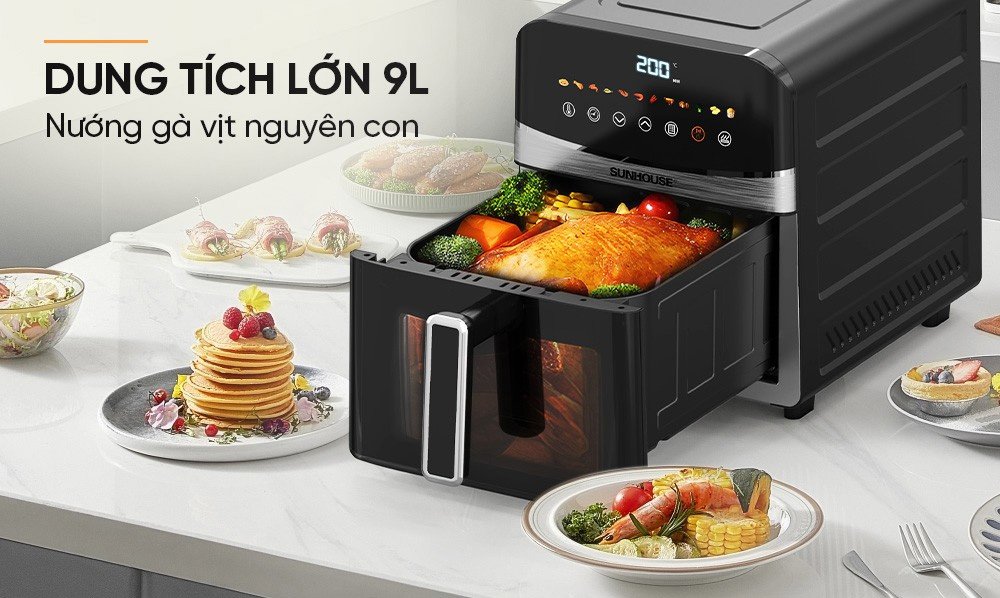 Nồi chiên không dầu Sunhouse SHD4090 sở hữu khoang chiên siêu khủng lên đến 9 lít tha hồ chiên nướng gà vịt nguyên con, ba rọi da giòn, bò tảng,...Bên cạnh đó, với công suất 1700W, thực phẩm nhanh chóng được làm chín trong thời gian ngắn. Điều này giúp tiết kiệm thời gian chuẩn bị món ăn.