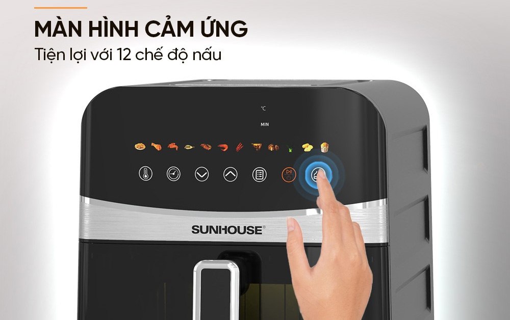 Cải tiến với bảng điều khiển dạng cảm ứng linh hoạt thể hiện bằng biểu tượng giúp người dùng dễ dàng nhận biết và sử dụng. Bảng điều khiển bao gồm phím cài đặt thời gian, nhiệt độ, 12 chế độ gợi ý cài đặt sẵn (biểu tượng các món ăn) như khoai chiên, gà chiên, cá nướng,...những chế độ này đã được thiết lập sẵn thời gian và nhiệt độ.