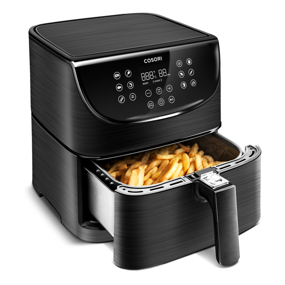 - Nồi chiên không dầu Cosori giúp giảm đến hơn 85% chất béo trong thức ăn so với các phương pháp chiên, rán truyền thống. Thức ăn không dầu mỡ, không bị ám khói, giữ nguyên vẹn hương vị thơm ngon.
