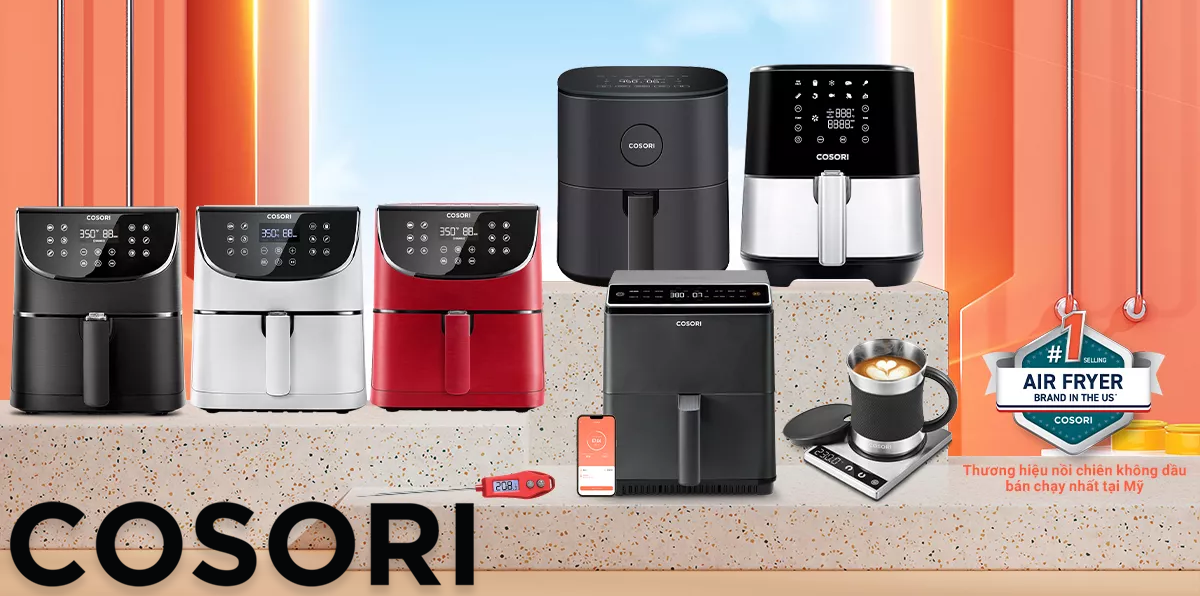 COSORI là thương hiệu đến từ Hoa Kỳ, có trụ sở tại California (thành lập 2016). Sản phẩm của Cosori hướng tới sự trang nhã, sang trọng ngay trong căn bếp gia đình, mang đến những bữa ăn ngon, những thức uống bổ dưỡng. Nổi bật trên hết chính là Nồi chiên không dầu - biểu tượng của sự cải tiến, giúp nấu ăn lành mạnh, tốt cho sức khỏe.