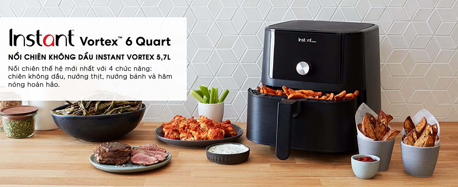 Thưởng thức hương vị thơm ngon cùng nồi chiên không dầu Instant Vortex 5.7L chỉ với một nút chạm. Sử dụng các Chương trình Thông minh cài sẵn để chiên, nướng, nướng bánh và hâm nóng tất cả các món yêu thích của gia đình bạn.