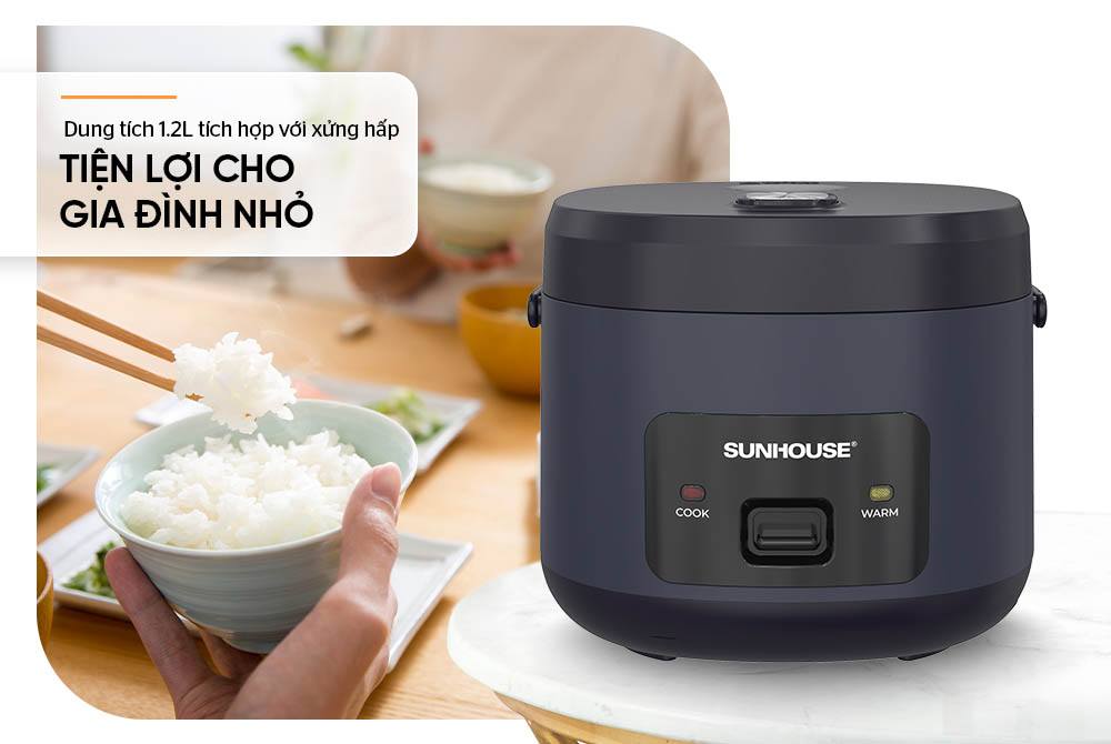 Với dung tích 1.2 lít, nồi cơm điện Sunhouse SHD8219 đáp ứng nhu cầu nấu cơm cho gia đình từ 2-4 thành viên, đảm bảo cơm chín đều và giữ nguyên hương vị.
