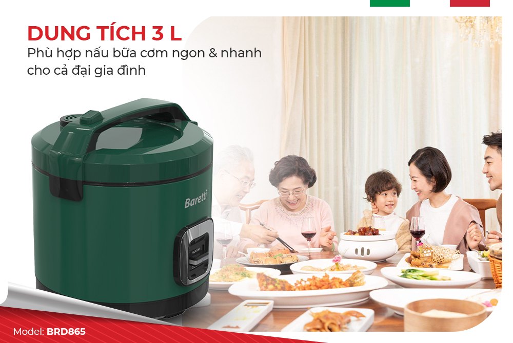 Nồi cơm điện Baretti 3.0 lít BRD865 sẽ giúp cho việc nấu cơm không chỉ trở nên dễ dàng, nhanh gọn mà còn giữ được độ thơm ngon, tròn vị cho mỗi bữa cơm cho cả đại gia đình.