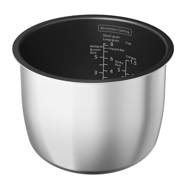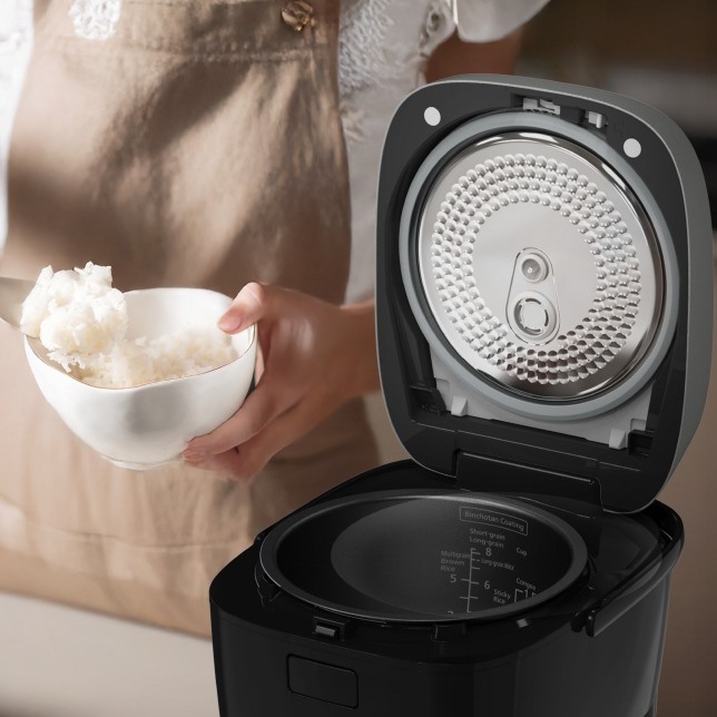 Trang bị lòng nồi dày 1.5mm, phủ chống dính Carbon Binchotan cao cấp giúp cho nhiệt được truyền đều đến từng hạt gạo, giúp cơm chín đều, thơm ngon.