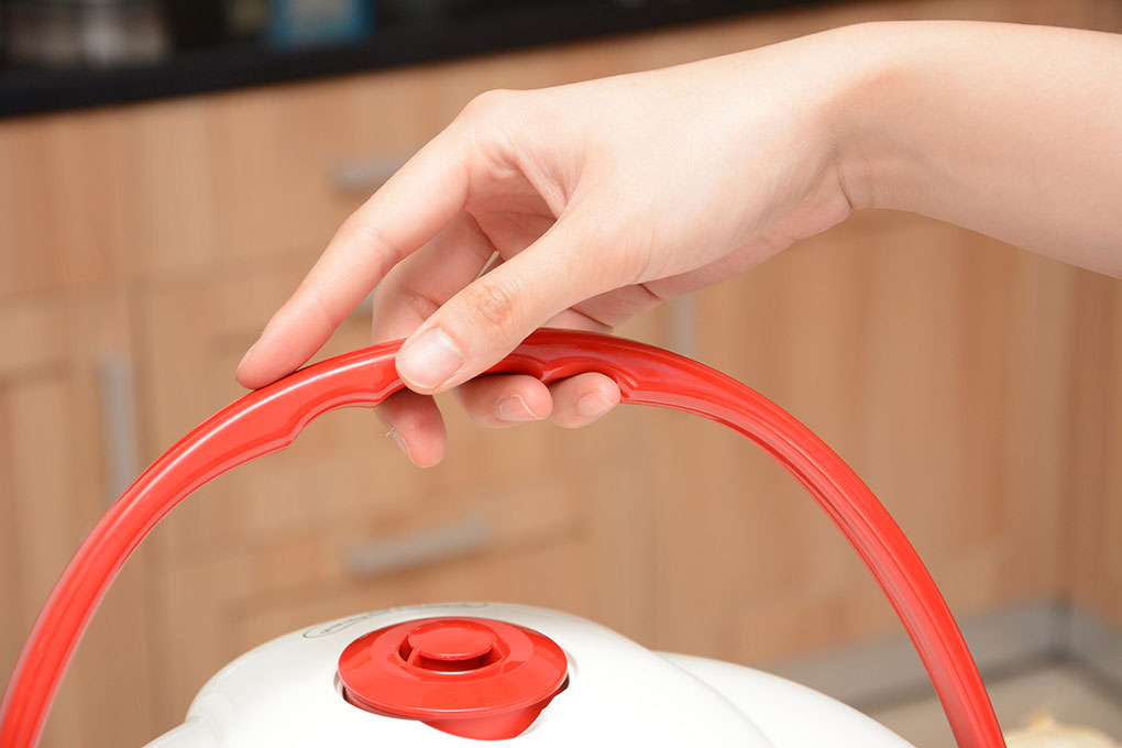 Ấn tượng với màu trắng và đỏ chủ đạo, sản phẩm thiết kế kiểu dáng đơn giản. Thân nồi được làm bằng chất liệu nhựa cao cấp siêu bền, chịu nhiệt, chịu lực tốt.