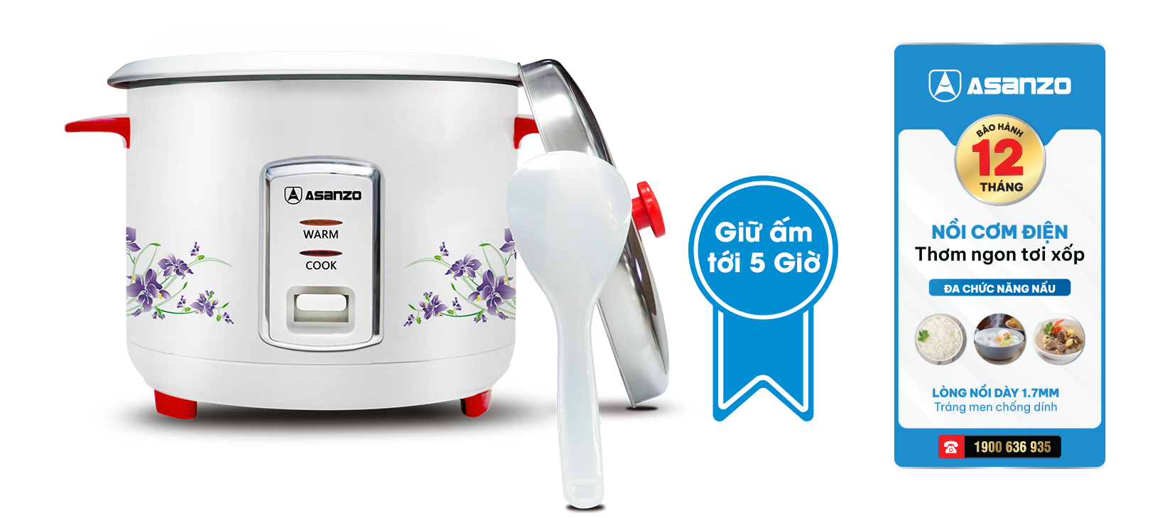 Sản phẩm nồi cơm điện 3.2L Asanzo RC-30WR bảo hành 1 năm chính hãng.
