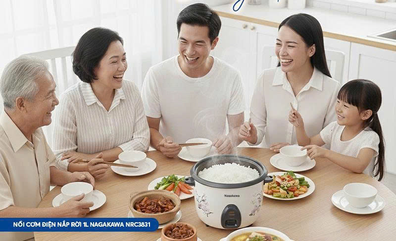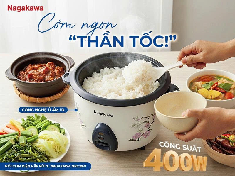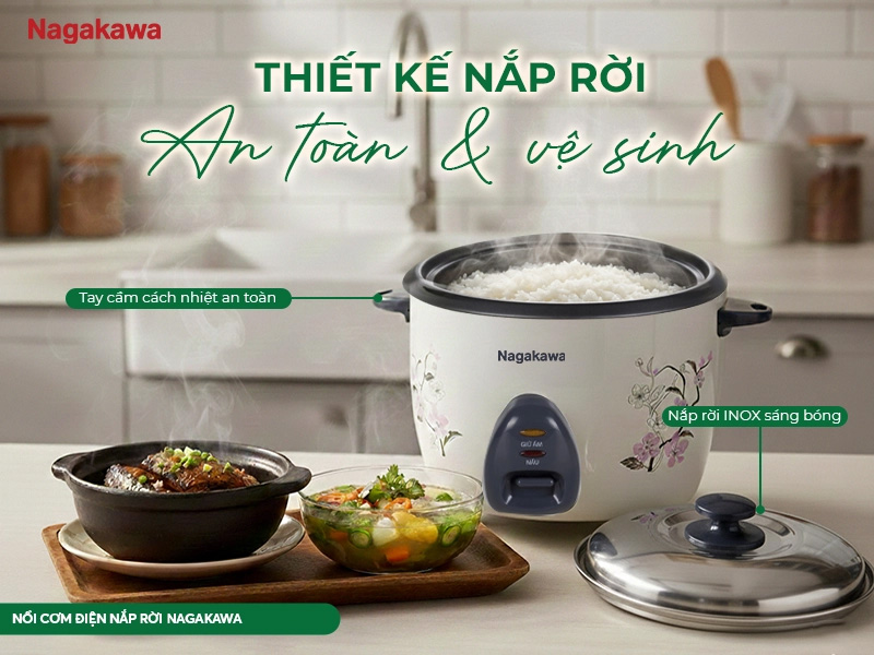 Nồi cơm điện Nagakawa NRC3831 sở hữu vẻ đẹp của chiếc nồi cơm điện truyền thống. Thiết kế nắp vung rời thuận tiện, dễ dàng mở ra đóng vào trong quá trình sử dụng. Đây là sự lựa chọn lý tưởng cho mâm cơm hằng ngày của gia đình bạn.