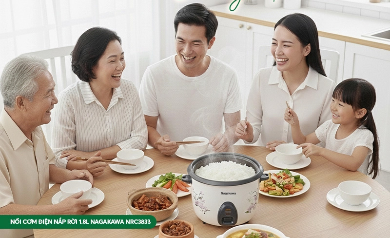 Dung tích 1.8 lít sẽ phù hợp cho bữa ăn khoảng 4-6 người ăn. Thiết kế kiểu dáng nhỏ dễ đặt trong mọi căn bếp, tạo cảm giác gọn gàng mà vẫn đáp ứng đủ nhu cầu ăn uống.