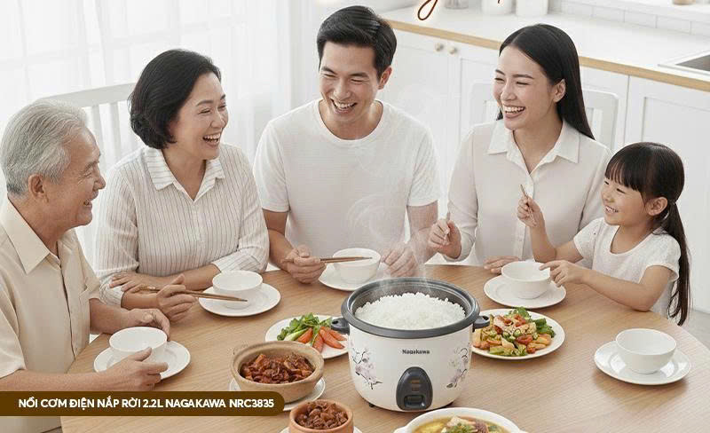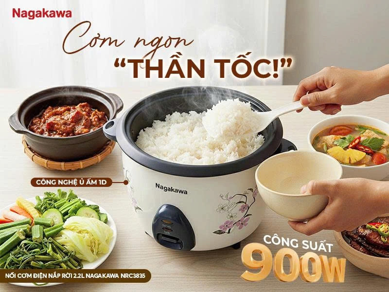 Nồi cơm điện Nagakawa NRC3835 sở hữu vẻ đẹp của chiếc nồi cơm điện truyền thống. Thiết kế nắp vung rời thuận tiện, dễ dàng mở ra đóng vào trong quá trình sử dụng. Đây là sự lựa chọn lý tưởng cho mâm cơm hằng ngày của gia đình bạn.