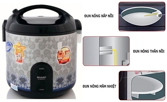 Nắp nồi cơm điện Sharp được đun nóng thoát hơi những giọt nước đọng trên nắp, công nghệ đun nóng mâm nhiệt dưới đáy và toàn thân lan tỏa nhiệt nhanh.