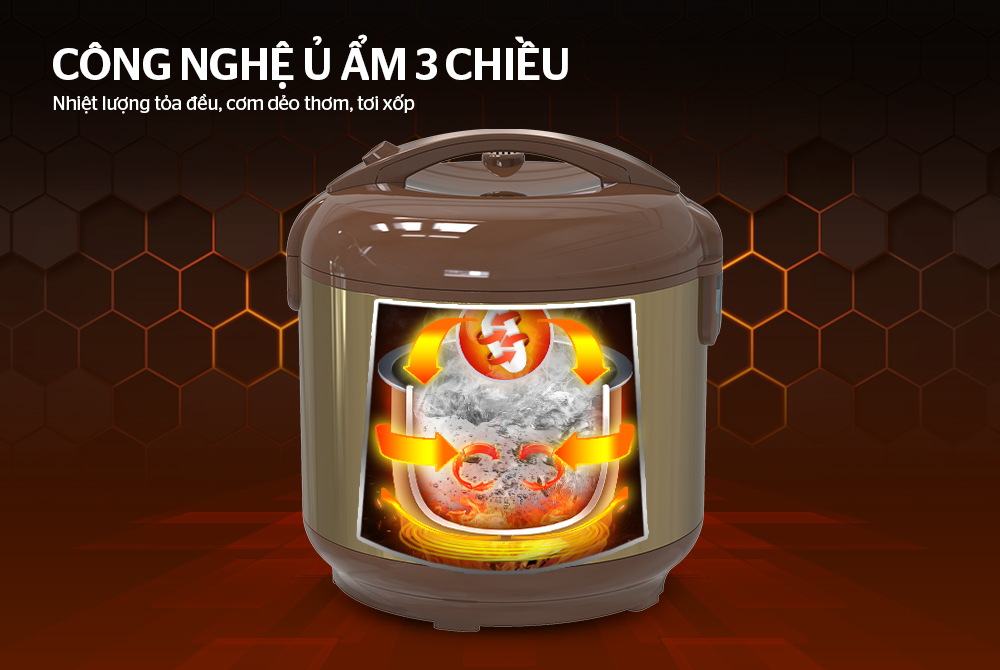 Với mâm nhiệt lớn và công suất 700W kết hợp công nghệ ủ ấm 3 chiều giúp nấu cơm chín nhanh hơn, dẻo, mềm và thơm.