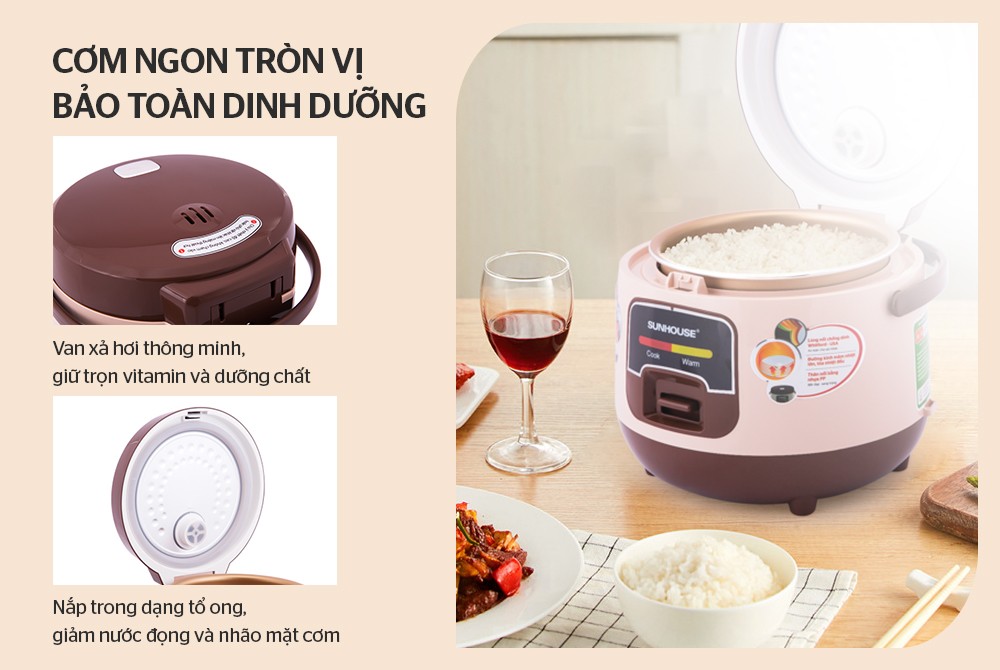 Sản phẩm có van thoát hơi thông minh, tận dụng tối đa hơi nước để làm chín mềm cơm và bảo toàn được tối đa dưỡng chất. Ngoài ra, thiết kế nắp trong dạng tổ ong ngăn hơi nước ngưng đọng trên nắp nhỏ xuống làm cơm nhão và dễ thiu, giúp cơm ráo mặt, thơm ngon hơn.