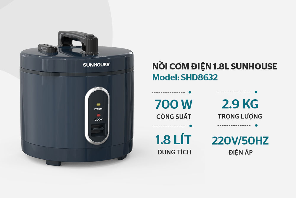 Thông số kỹ thuật nồi cơm nắp liền Sunhouse SHD8632
