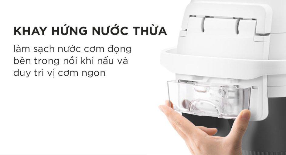 Công nghệ thoát nước thừa mạnh mẽ với khay hứng nước thừa được cải tiến lớn hơn. Làm sạch nước cơm đọng lại bên trong nồi khi nấu, giúp duy trì vị cơm ngon trong thời gian dài.