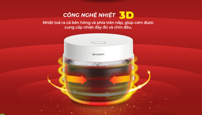 Tỏa nhiệt đều từ phía trên đến bên hông lòng nồi, giúp cơm được cung cấp nhiệt đầy đủ và chín đều.