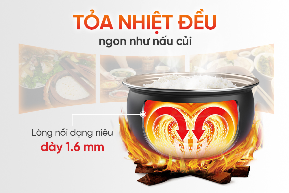 | Lòng nồi | Dày 1.6mm Phủ chống dính Whitford |