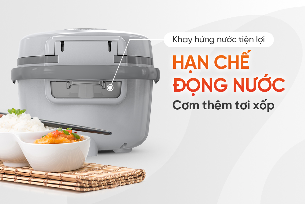 Nồi cơm điện tử 1.8l Sunhouse SHD8912 còn được trang bị khay hứng nước thông minh, giúp hạn chế tối đa tình trạng đọng nước trong quá trình nấu. Khi cơm nấu xong, hơi nước không bị ngưng tụ mà sẽ chảy vào khay chứa, tránh tình trạng cơm bị nhão hay ướt. Nhờ đó, cơm luôn giữ được độ tơi xốp và thơm ngon.