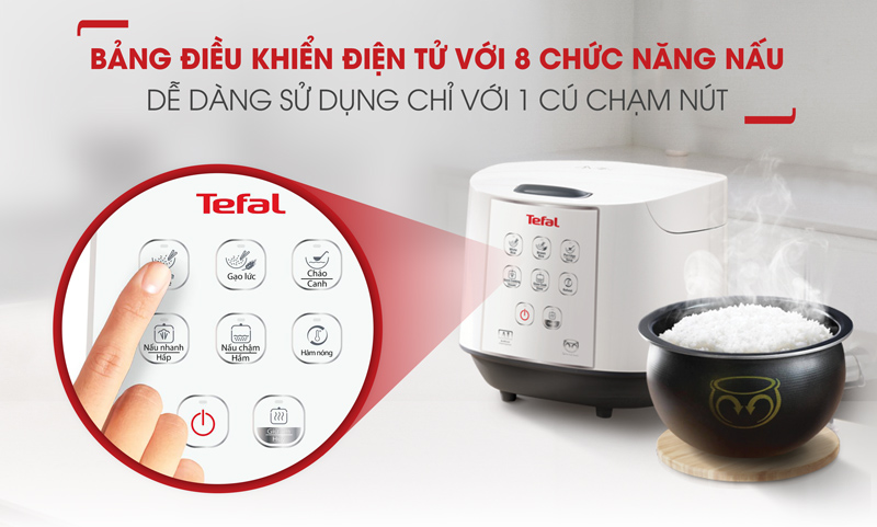 Nồi cơm điện tử Tefal 1.8 lít RK732168 từ Pháp thiết kế đơn giản nấu cơm nhanh với 8 chế độ tích hợp tự động sẽ là lựa chọn hoàn hảo cho gia đình Bạn.