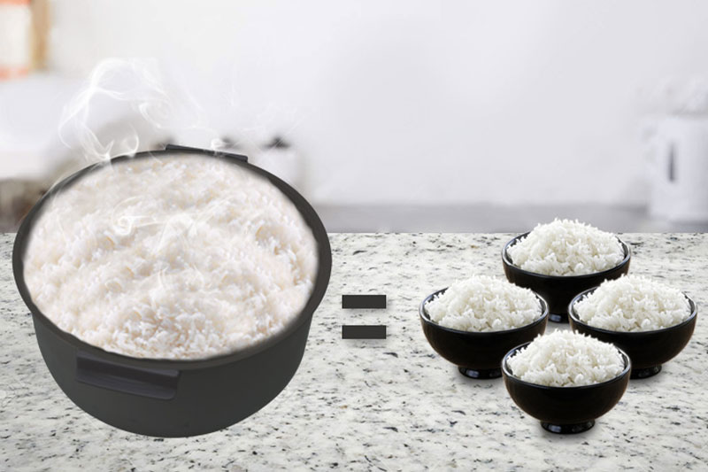 Đong được khoảng 5 - 8 cốc gạo (cốc kèm nồi) tương đương hơn 2 lon sữa.