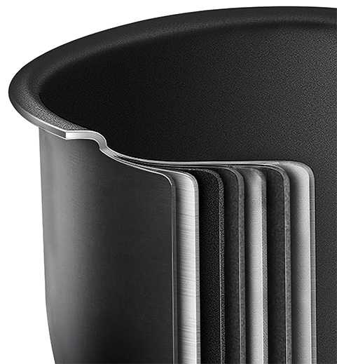 Sự kết hợp giữa các vật liệu truyền nhiệt và giữ nhiệt khiến sản phẩm gần như một thiết kế lý tưởng. Với 7 lớp dày 4mm giúp giữ nhiệt tốt và cung cấp nhiệt đồng đều đến từng hạt gạo.