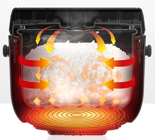 Trải nghiệm nấu cơm hoàn toàn mới với công nghệ gia nhiệt 3D độc đáo, tỏa nhiệt và làm nóng đều từ mọi phía giúp cơm chín nhanh, mềm dẻo, ngọt thơm tự nhiên.
