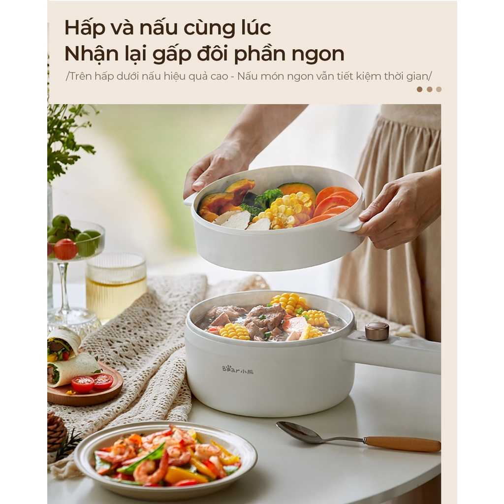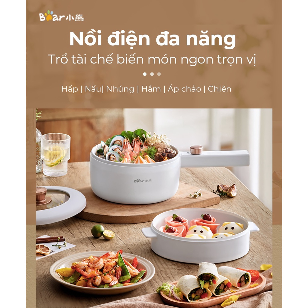 Nồi nấu đa năng Bear DRG-F30H1 với dung tích lớn 1.6 lít phù hợp chiên - xào - nấu - hấp nhiều món ăn, đáp ứng khẩu phần ăn 2-4 người. Đây là sản phẩm thiết thực dành cho các bạn ở trọ, dân văn phòng,...