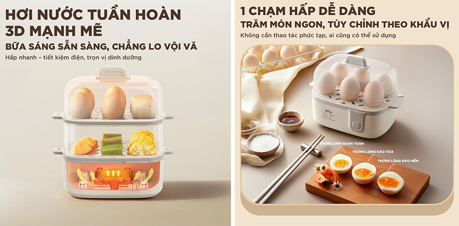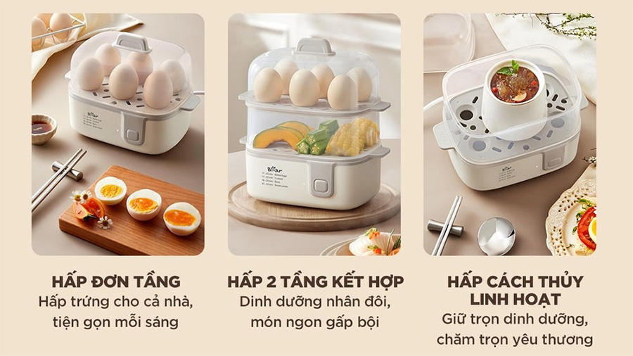 | Chất liệu khay hấp | Nhựa cao cấp, chịu nhiệt |