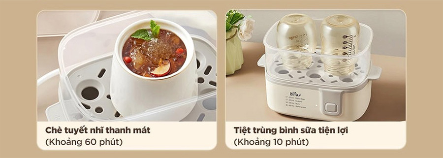 Điều đặc biệt, ngoài hấp thức ăn, bạn có thể sử dụng Bear ECK-125NR như một chiếc máy tiệt trùng bình sữa cho bé (phương pháp tiệt trùng bằng hơi nước).
