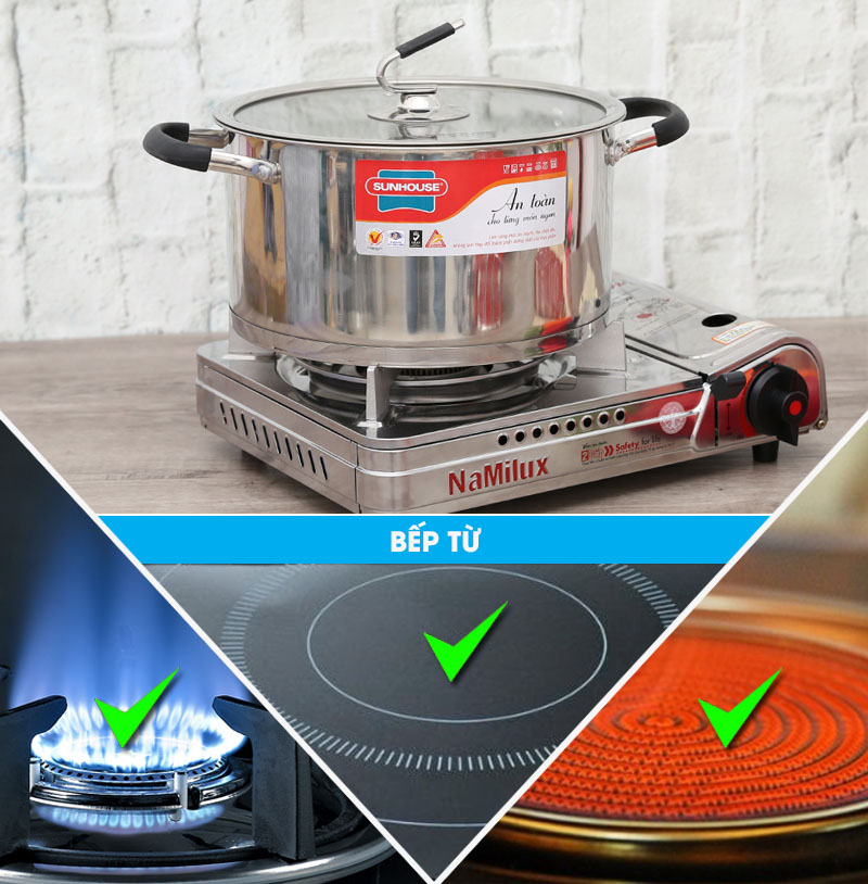 Nồi Sunhouse SHG24324 dùng được trên bếp gas, bếp từ, bếp hồng ngoại..